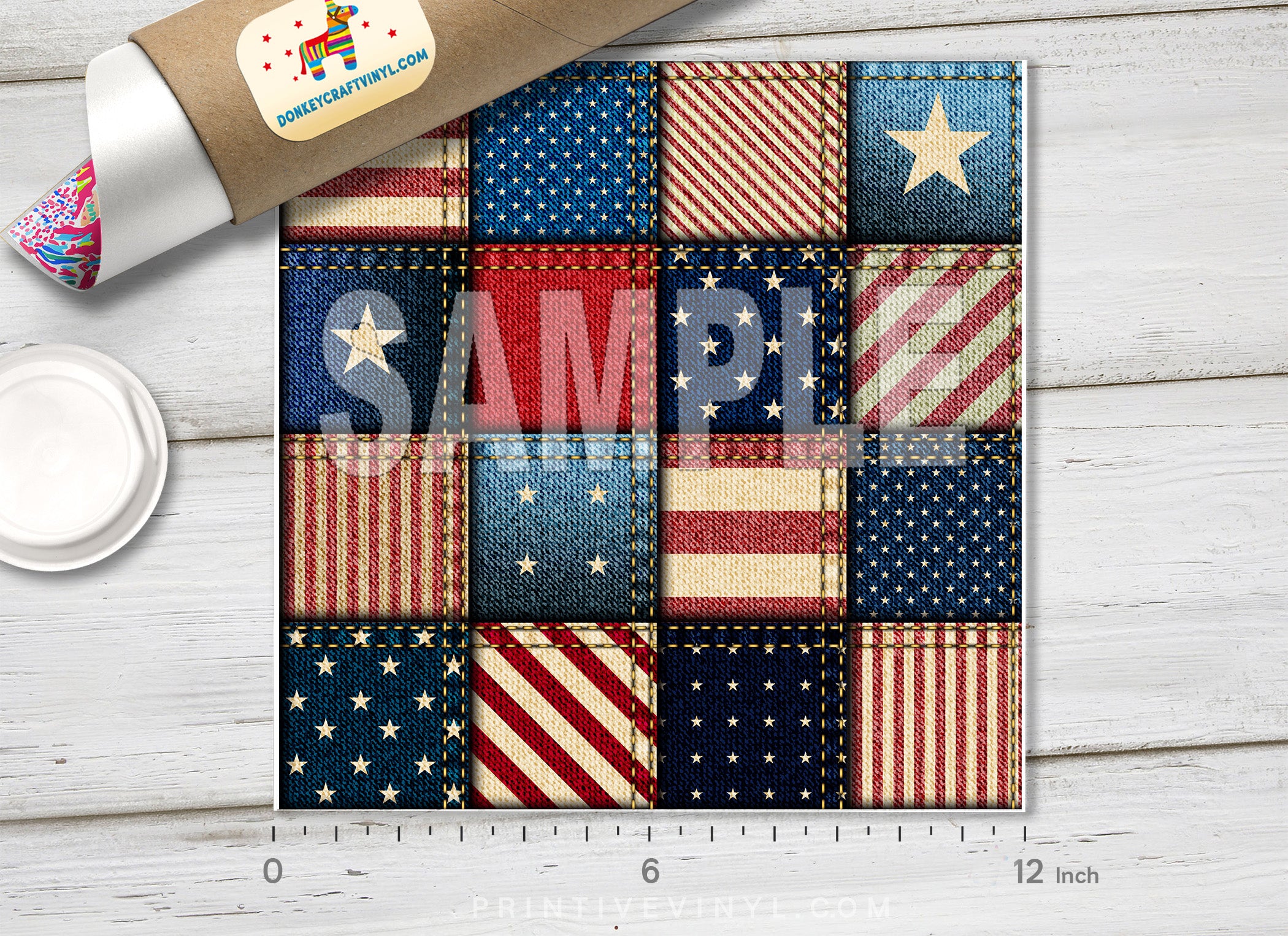 American flag patchwork Patterned HTV 025