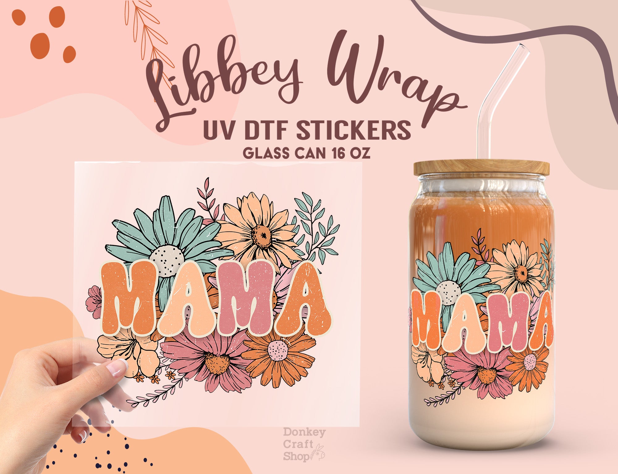 Celebrate special family moments with our Floral “Big Sister” & “Mama” UV DTF adhesive cup wraps, perfectly sized for 16oz Libbey glass cans (cups not included).