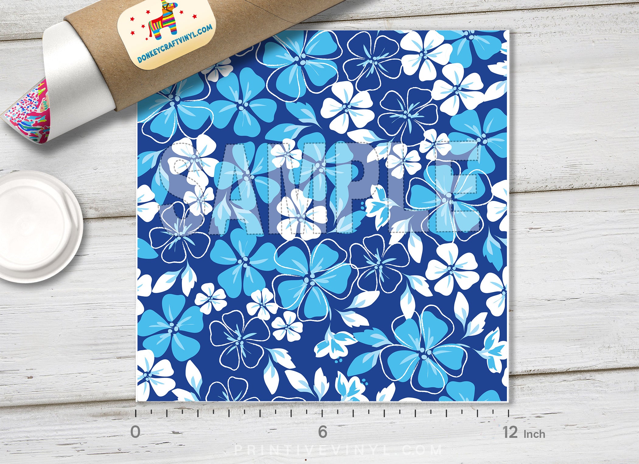 Blue Hawaiian Hibiscus  Patterned Adhesive Vinyl 934