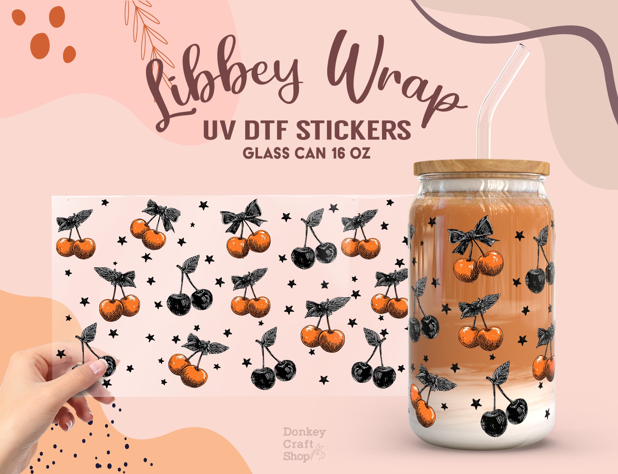 Add a sweet and retro vibe to your 16oz Libbey glass can with this adorable cherry UV DTF wrap decal!