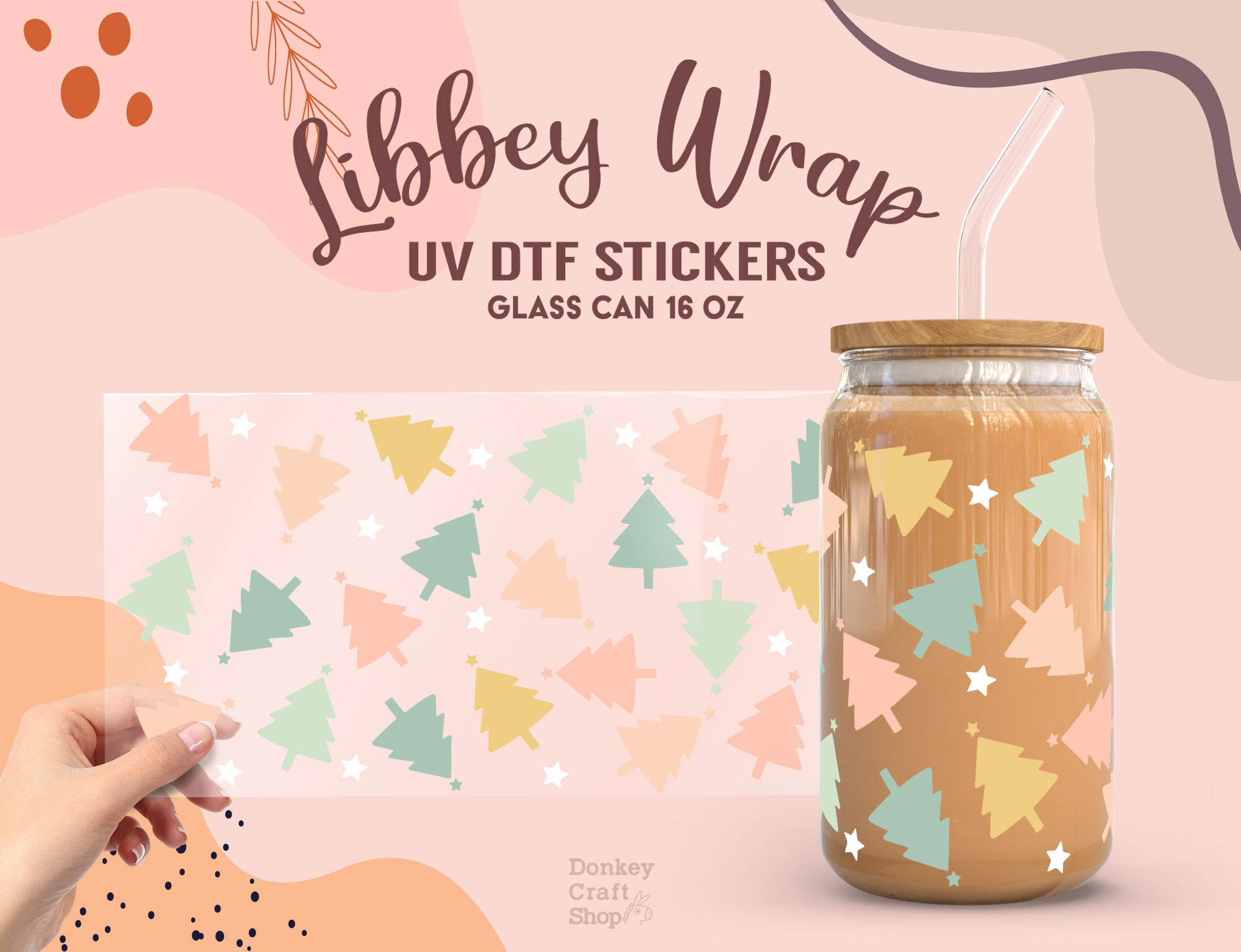 Christmas Tree UV DTF, Ready to Transfer, 16 oz Libbey Glass Can Wrap UV010