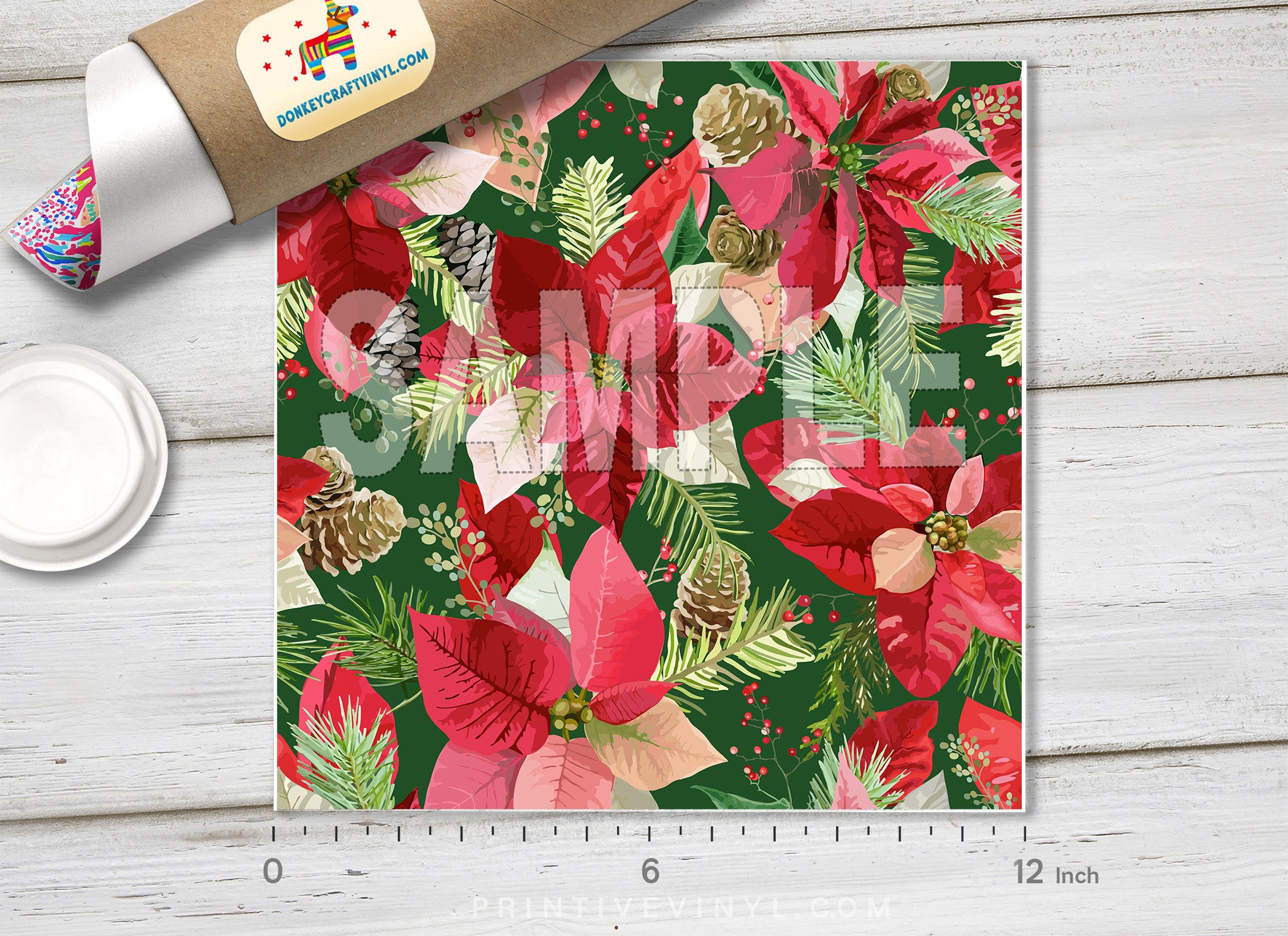 Christmas Winter Poinsettia Flowers Adhesive Patterned HTV X002