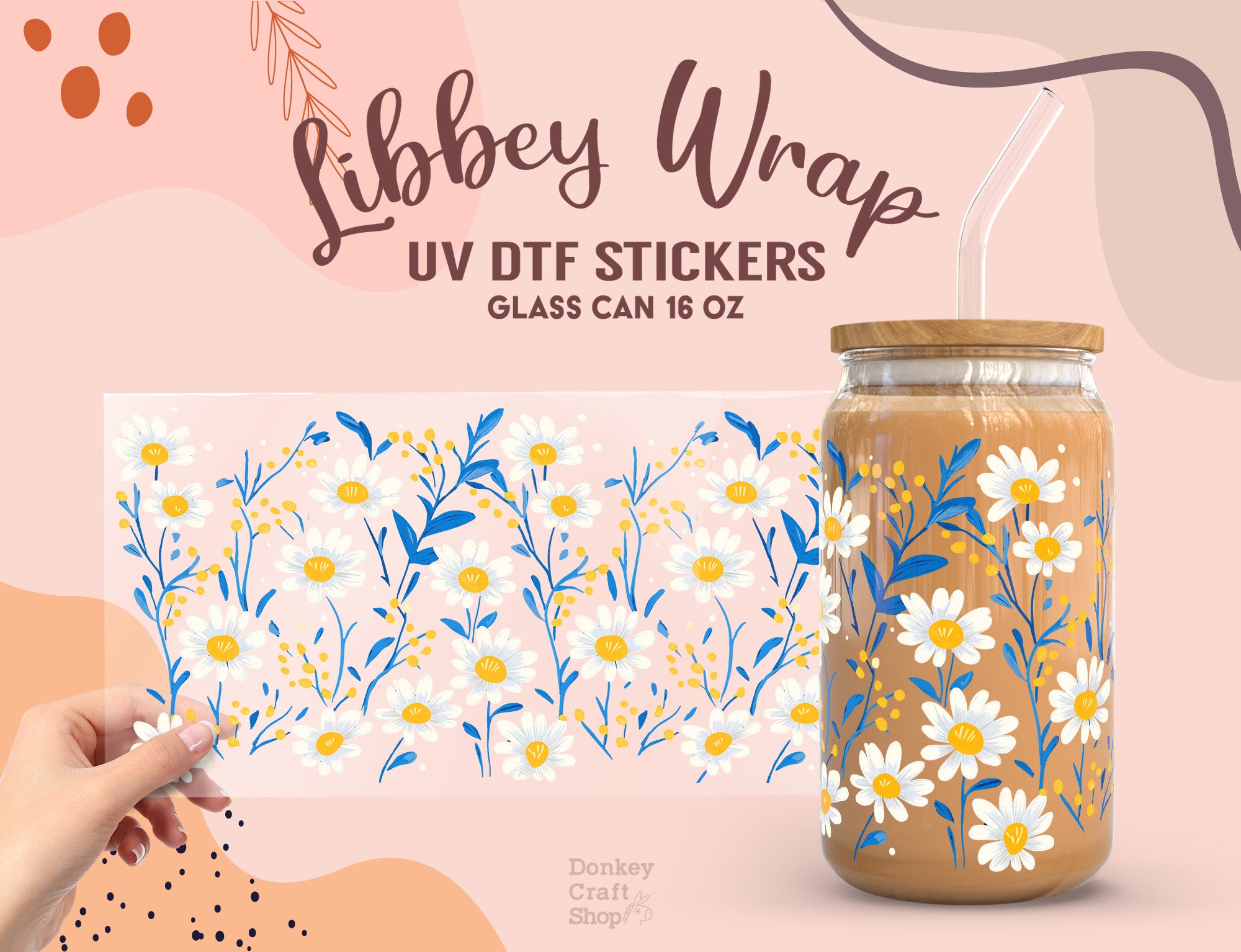 Daisy Floral UV DTF Cup Wrap for 16oz Libbey Glass | Waterproof Sticker UV113