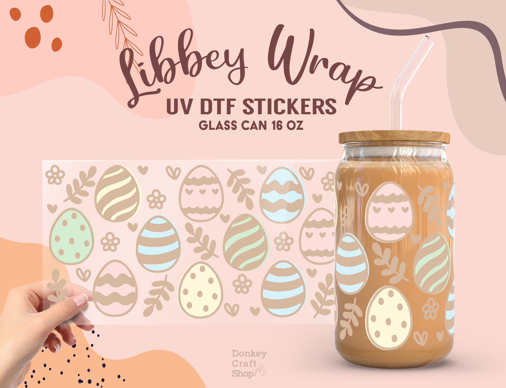 Celebrate spring and Easter in style with our Easter Egg UV DTF Wrap, perfectly sized for 16oz Libbey glass cans (glass not included). This festive wrap features pastel-colored Easter eggs, hearts, and floral accents — a cheerful design for holiday gatherings, parties, or everyday use during springtime.