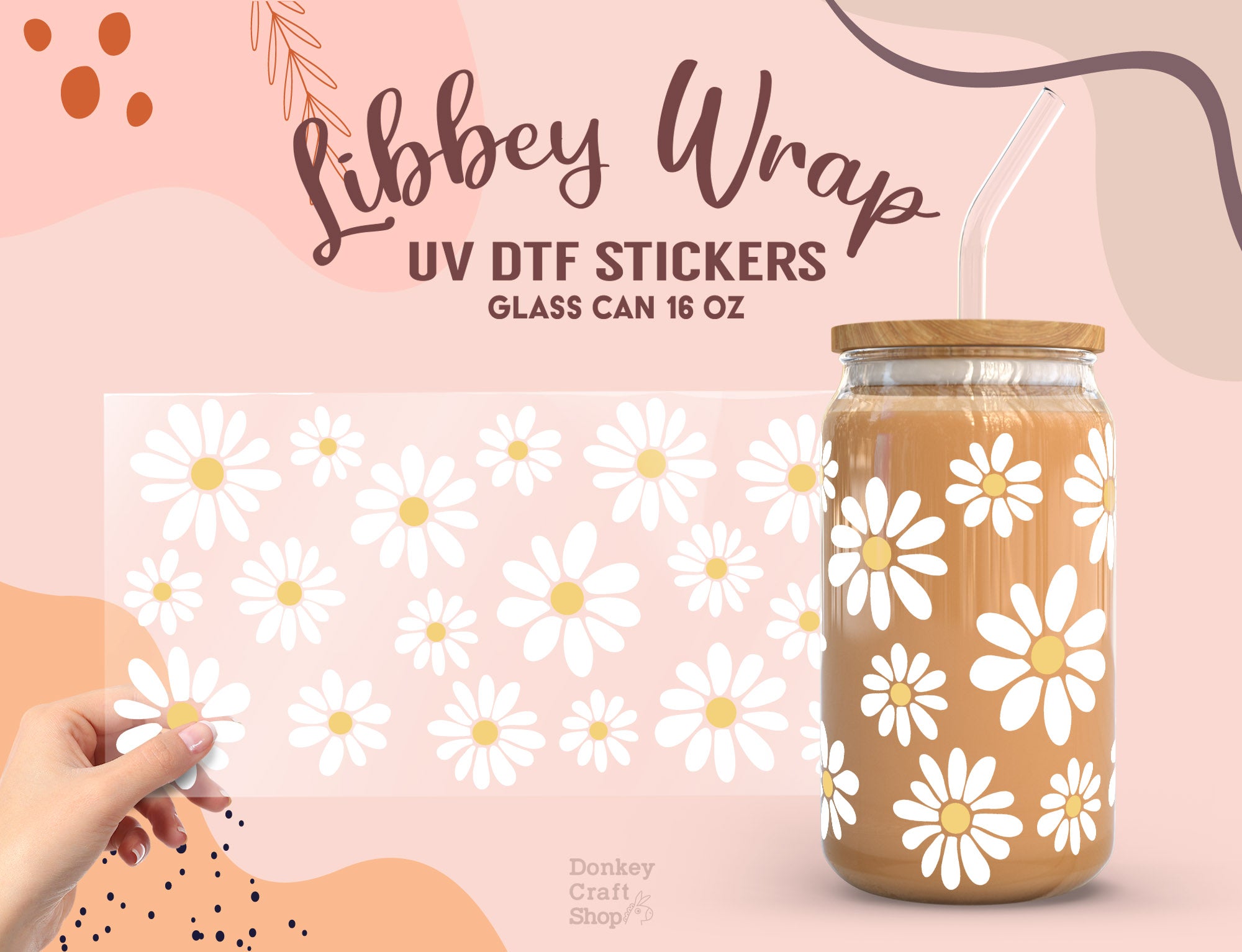 Daisy Flower UV DTF, Ready to Transfer, 16 oz Libbey Glass Can Wrap UV002