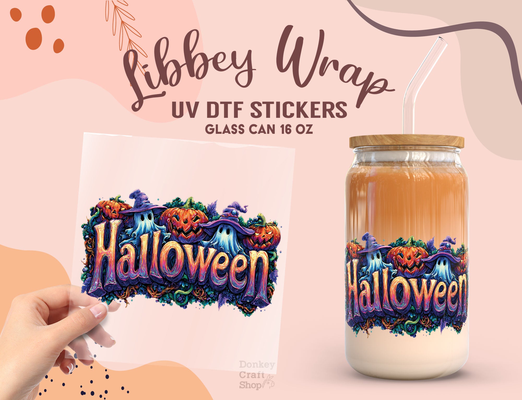 Bring spooky vibes to your drinks with this Halloween Ghost & Pumpkin UV DTF Wrap, designed for 16oz Libbey glass cans (cup not included). Featuring glowing ghosts, carved pumpkins, and bold “Halloween” lettering, this wrap is perfect for parties, trick-or-treat drinks, or seasonal gifts.