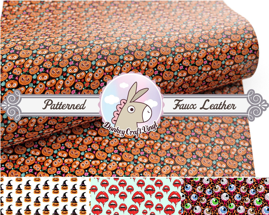Halloween Pumpkin Printed Faux Leather FL036