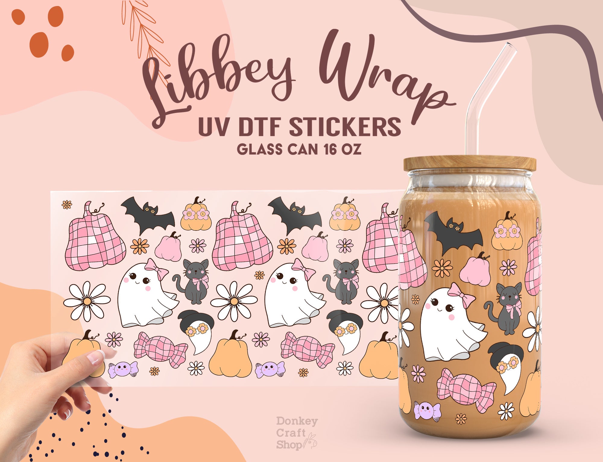 Halloween UV DTF, Ready to Transfer, 16 oz Libbey Glass Can Wrap UV017