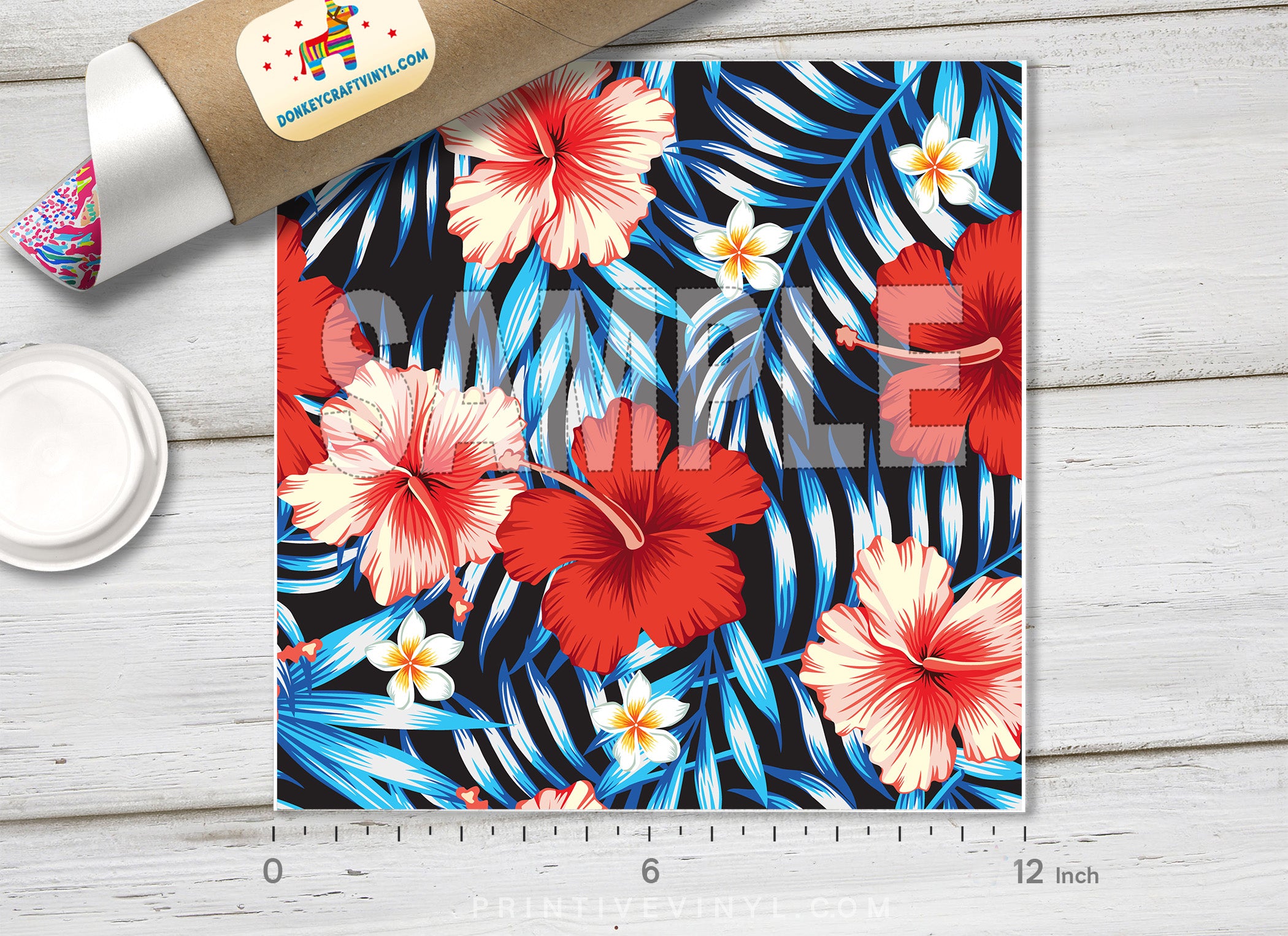 Hibiscus Flower and Palm Leaves  Patterned HTV 379