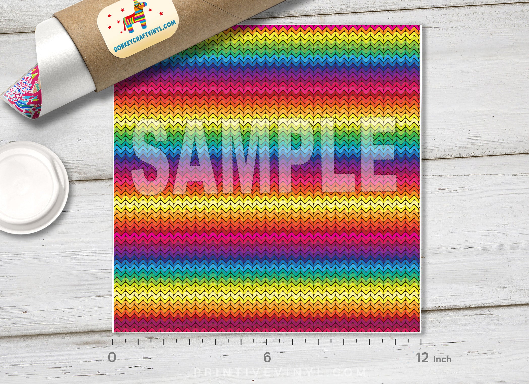 Rainbow Serape Knitted Blanket Patterned HTV- 926