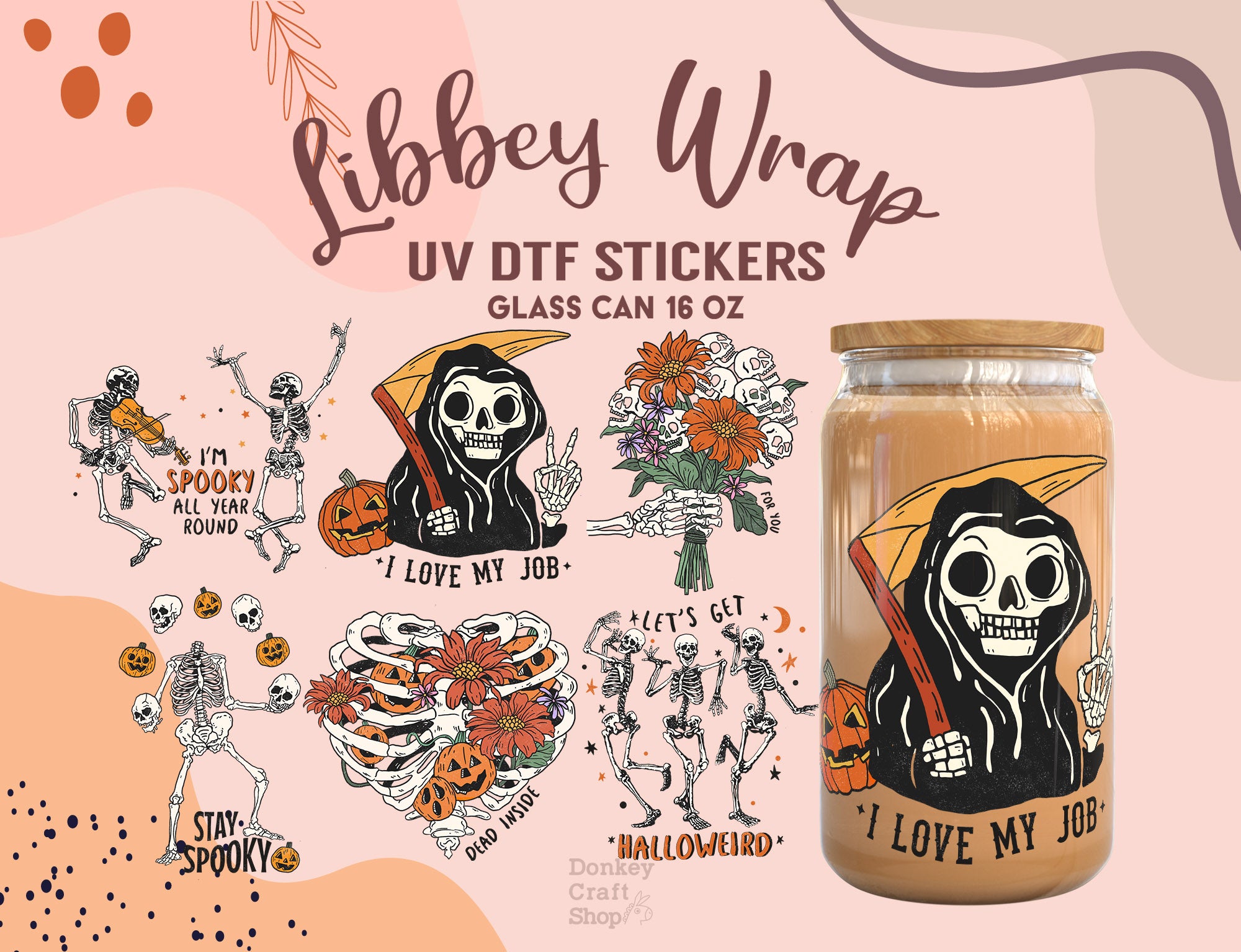 UV DTF adhesive cup wraps for a 16oz Glass Cup size. (Cup not included)