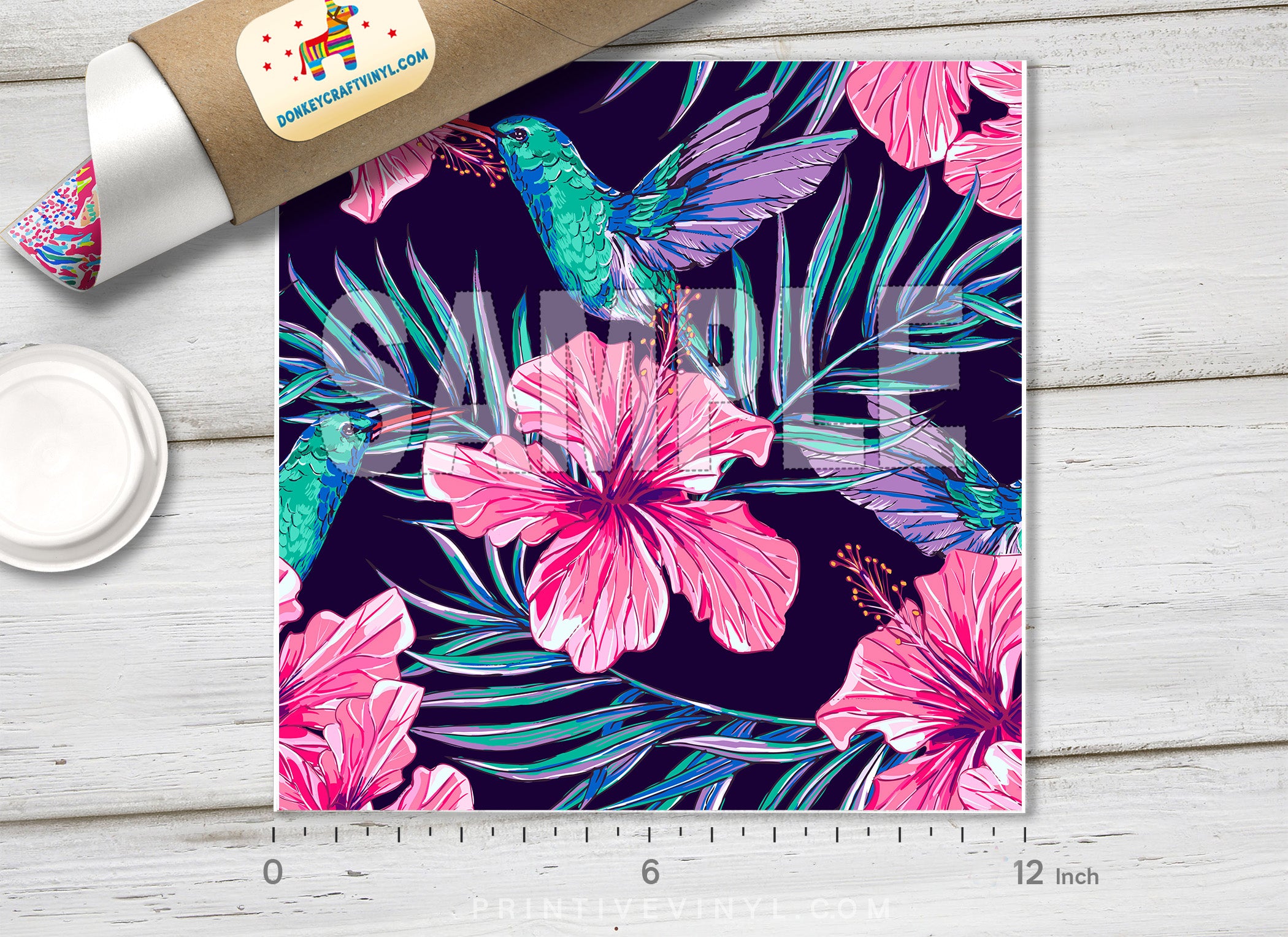 Tropical Flowers Hummingbirds Patterned HTV 724