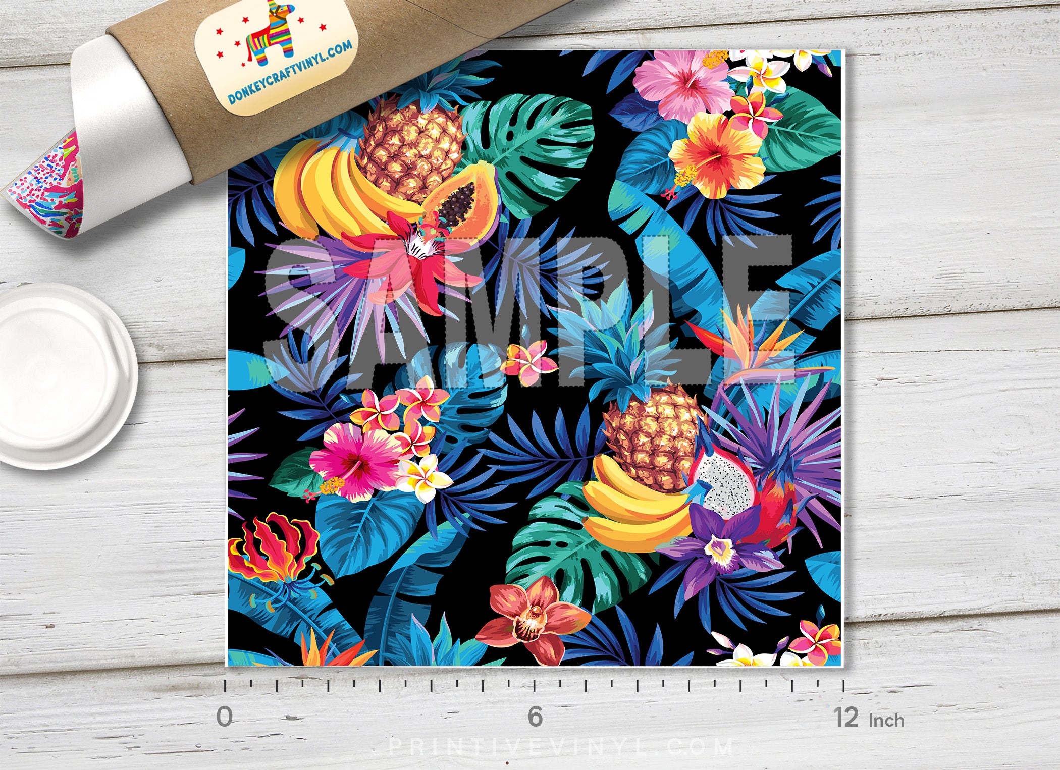 Tropical Fruits Palm Leaves Patterned Adhesive Vinyl 875