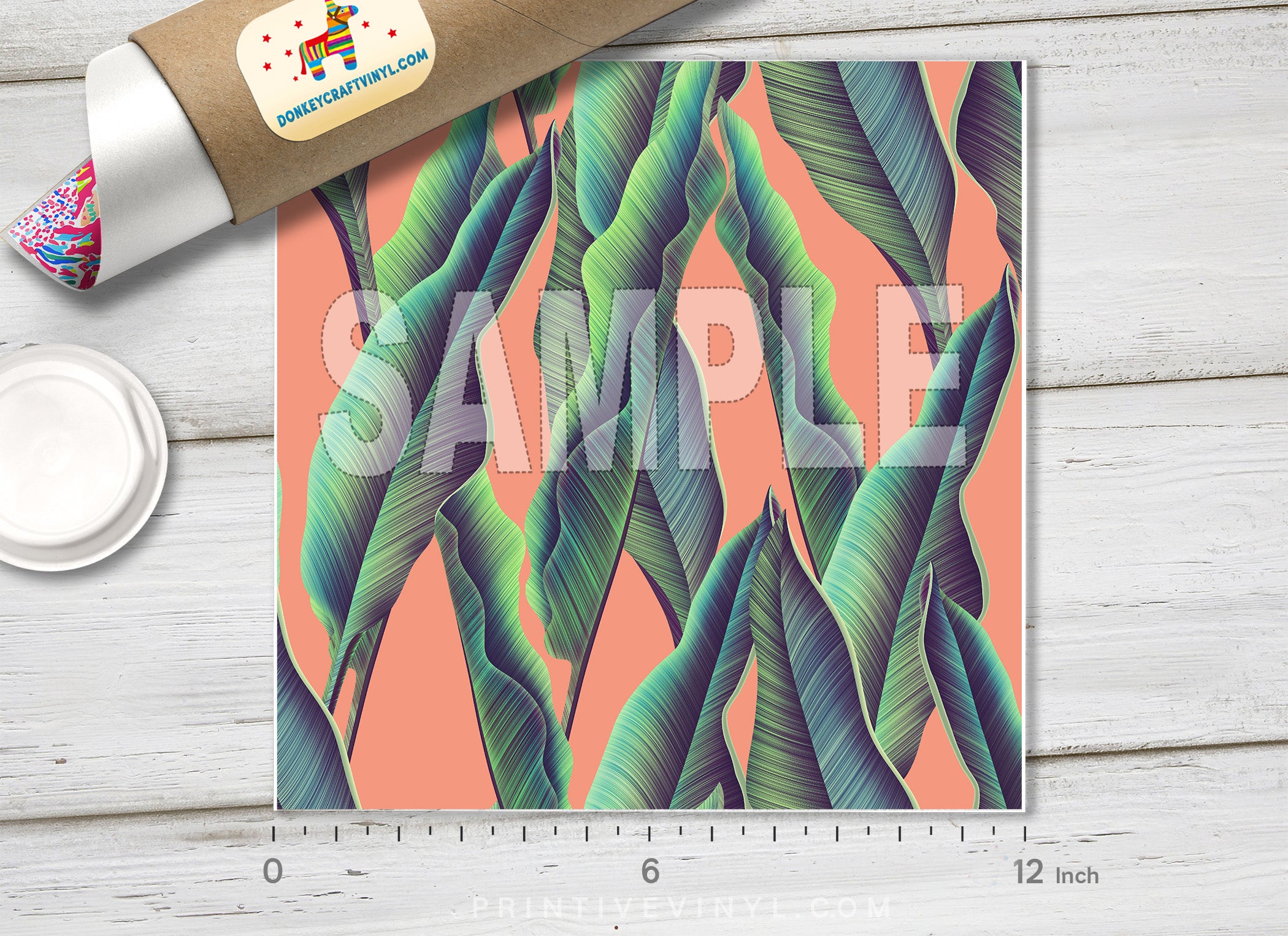 Tropical Hawaiian Palm Leaves Patterned HTV 009