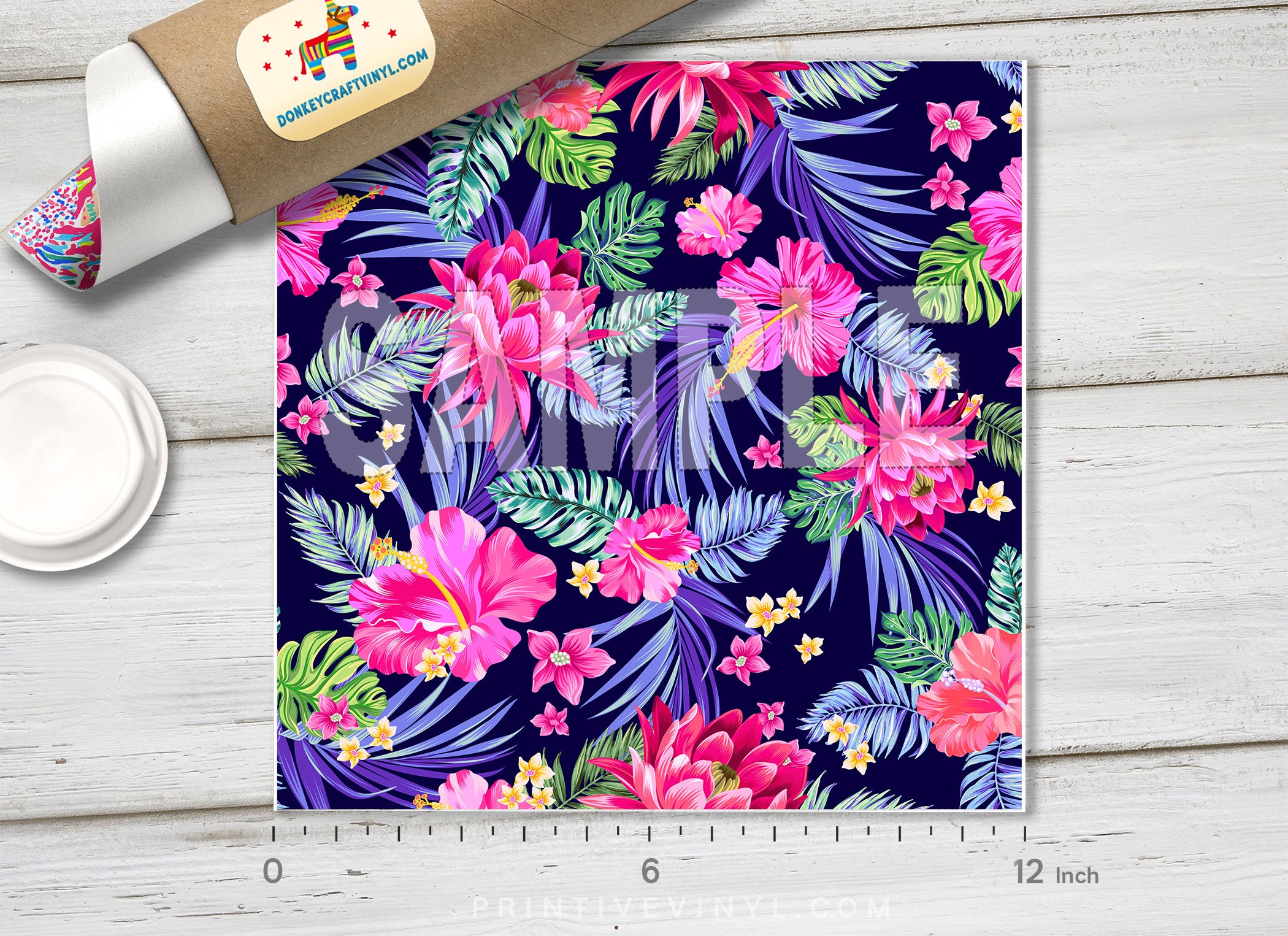 Tropical Hibiscus Palms Daisies Patterned HTV  965