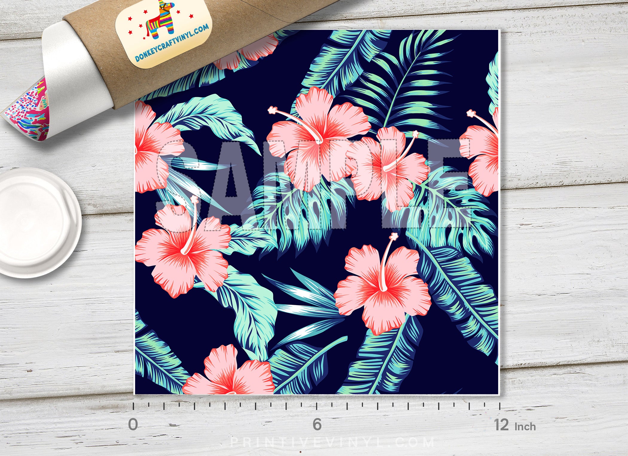 Tropical Pink Hibiscus Flowers Patterned HTV- 913