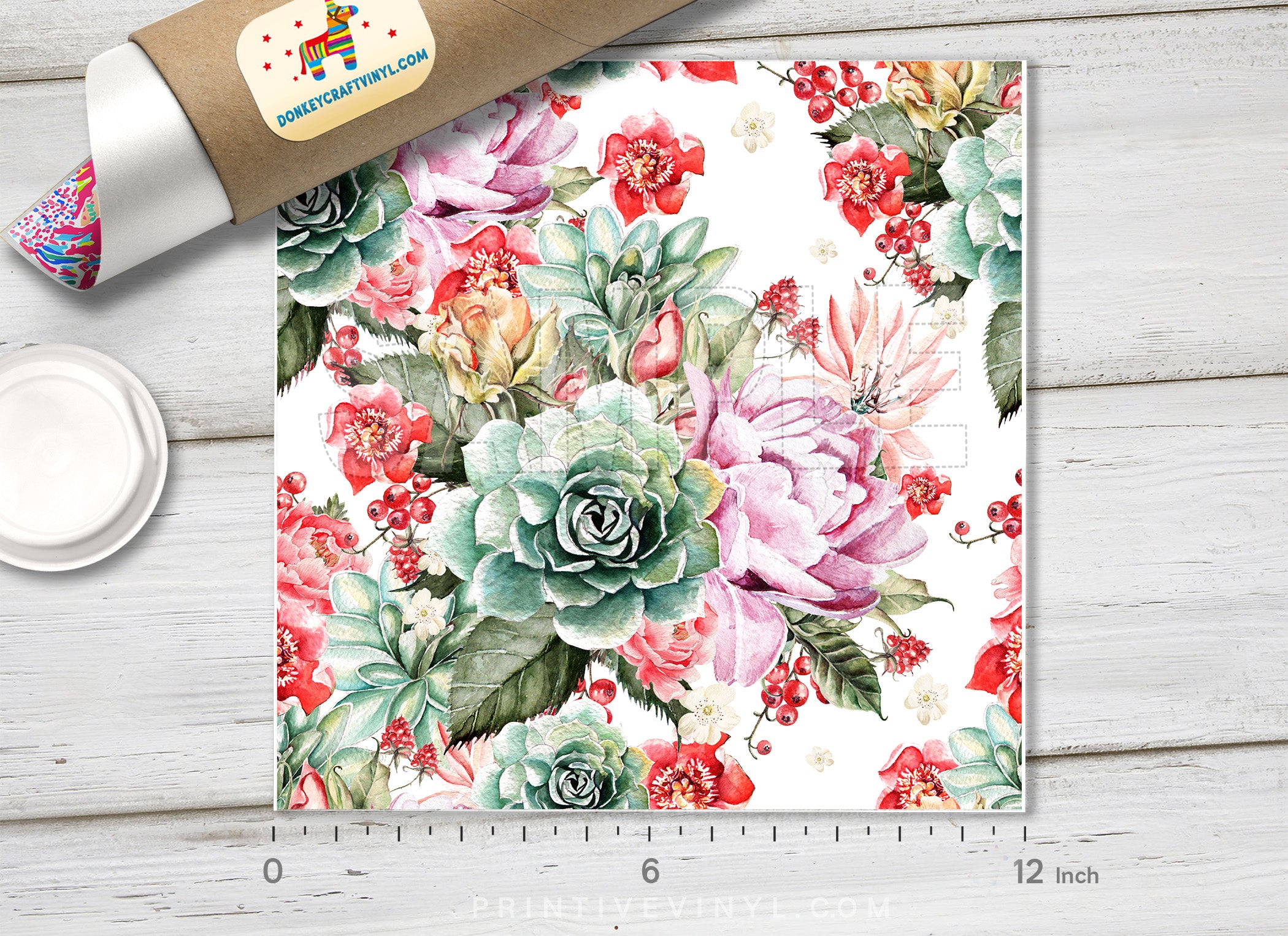 Watercolor cactus and Flowers Patterned HTV 521
