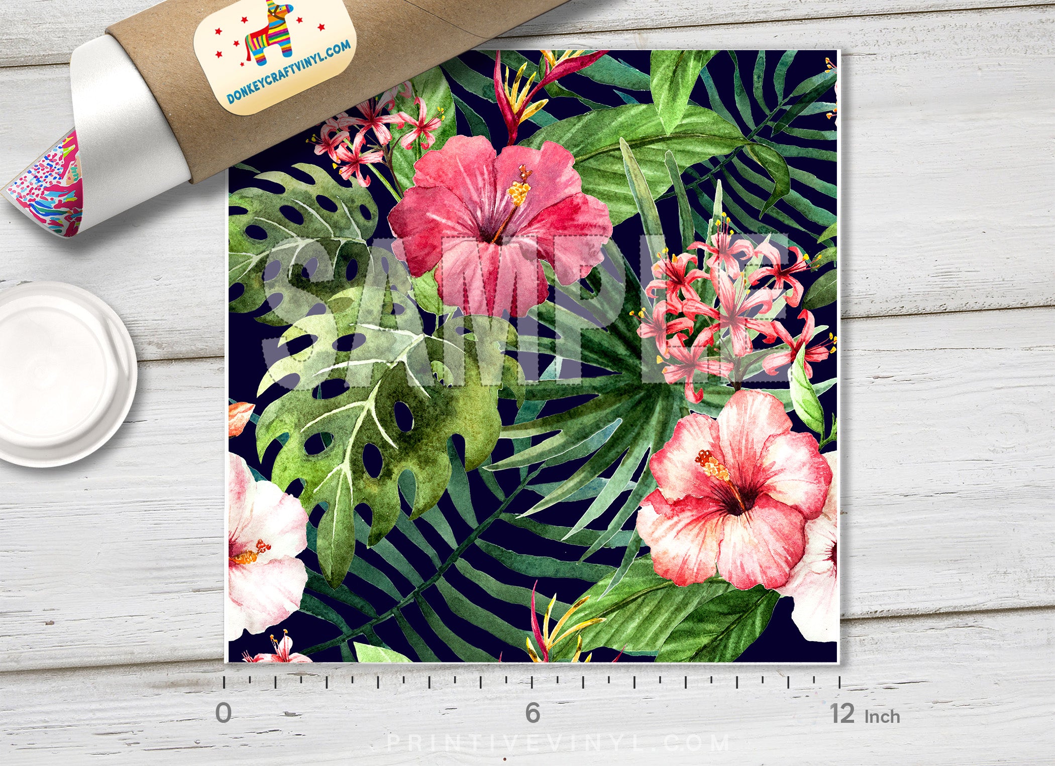 Watercolor Tropical Hawaii Hibiscus Patterned HTV 680
